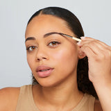 Brush brows upwards and outward with the Spoolie. Using the Eye/Brow Brush, apply brow powder to brows, filling in gaps along your natural contour. Brush through brows to diffuse the formula and set brows in place.